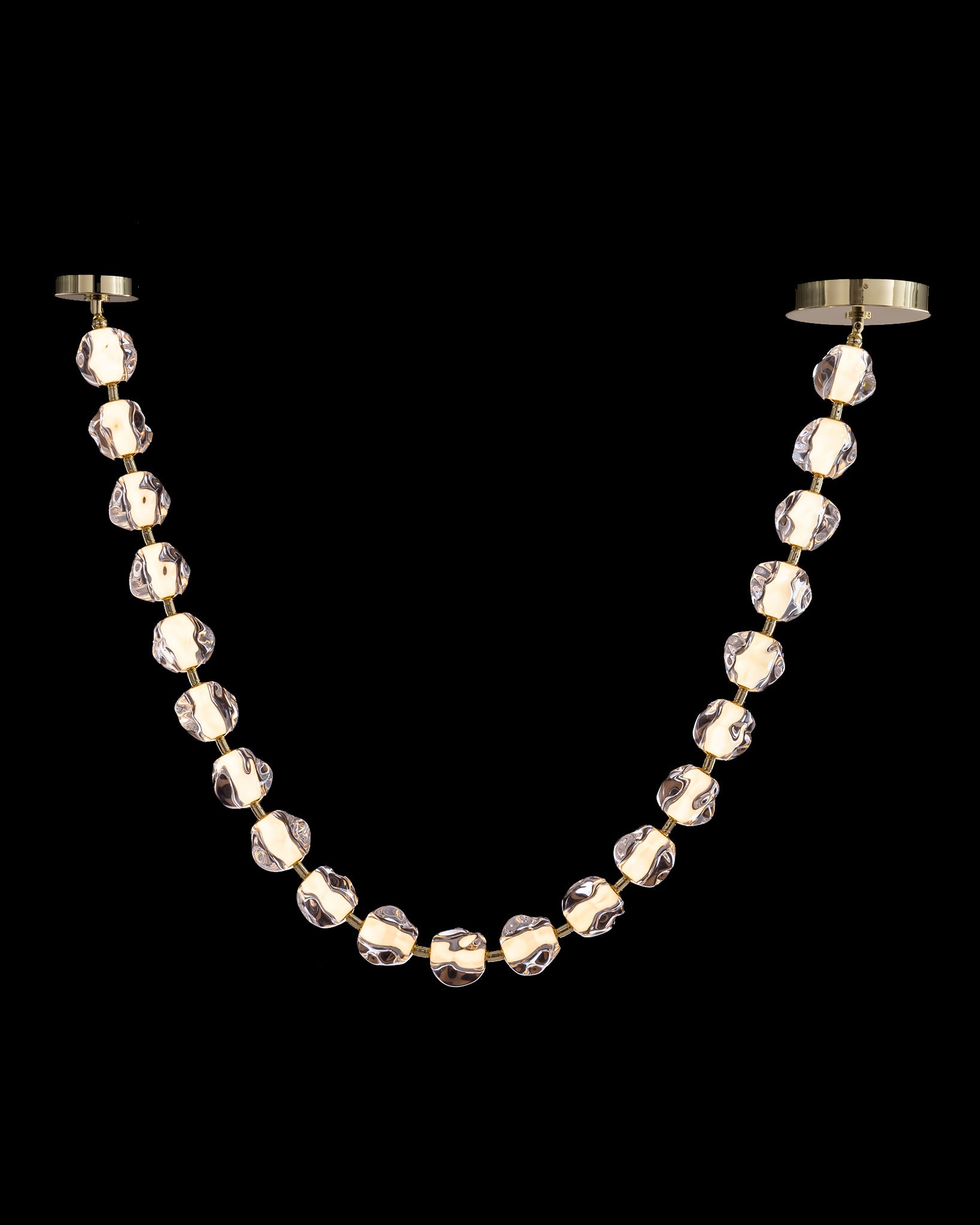 Ciottolo 21 Light Satin Gold LED Pendant features a chain of organic globe shaped shades.