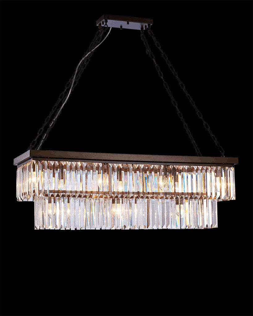 Crystalline Large Rectangular Pendant Antique Bronze Illuminati Light