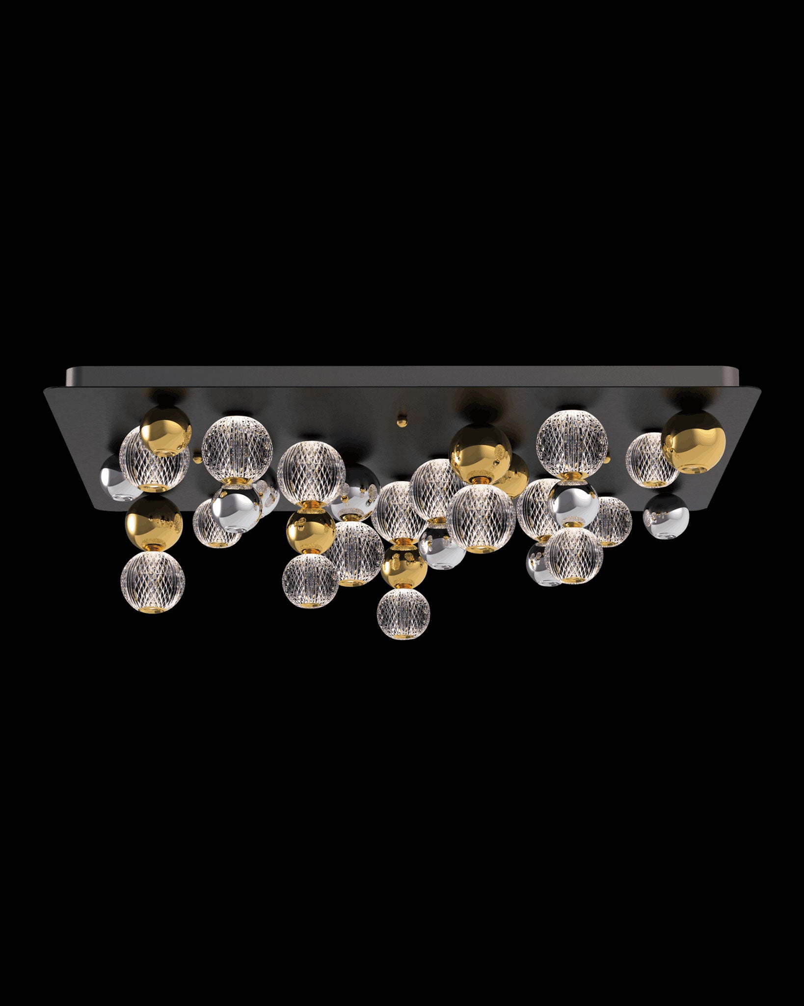 Diamante Embellished 19Lt Flush Retangle Black Plate Chrome Light