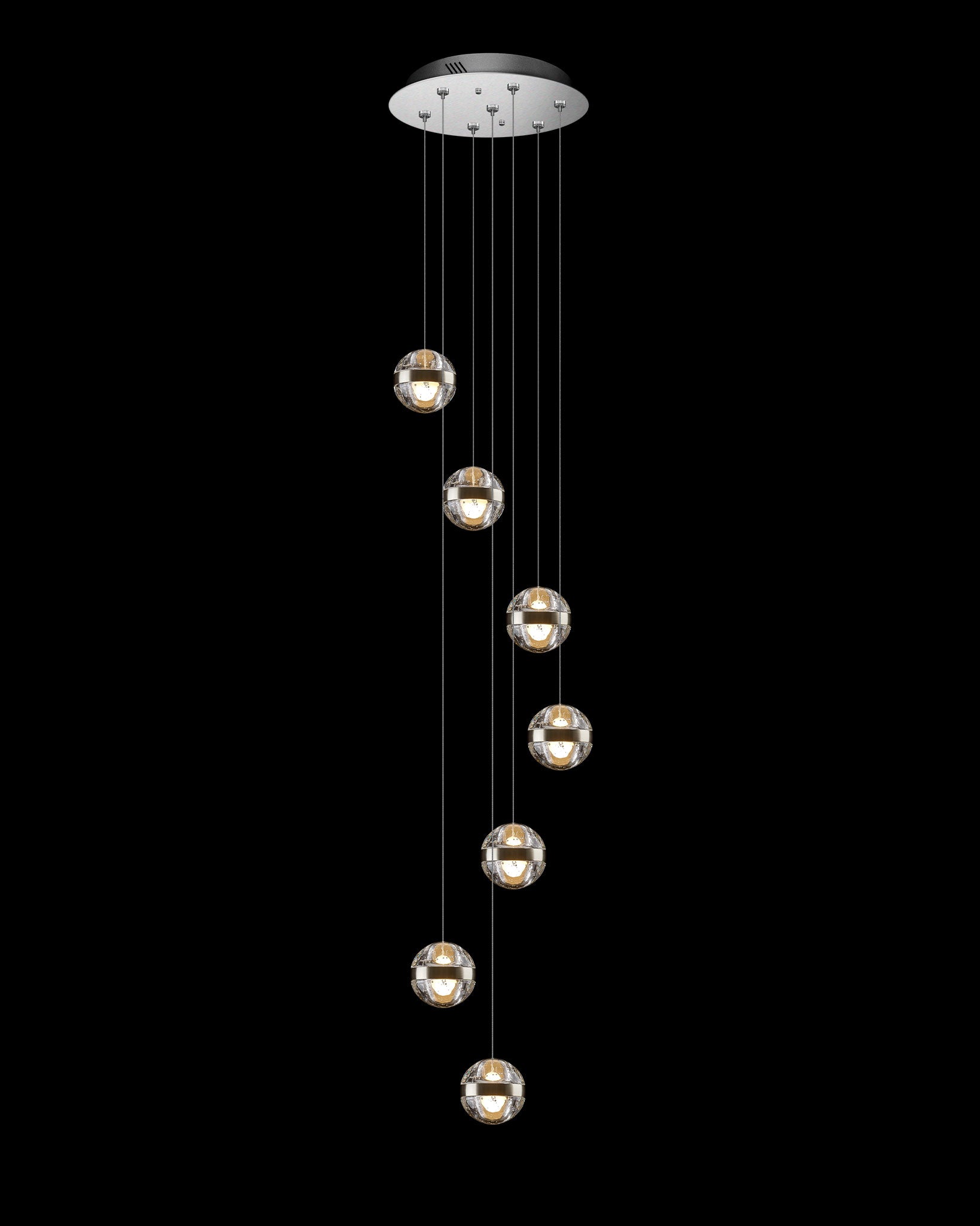 Frizzante 7Lt Round Pendant Satin Nickel Clear Glass Illuminati Light