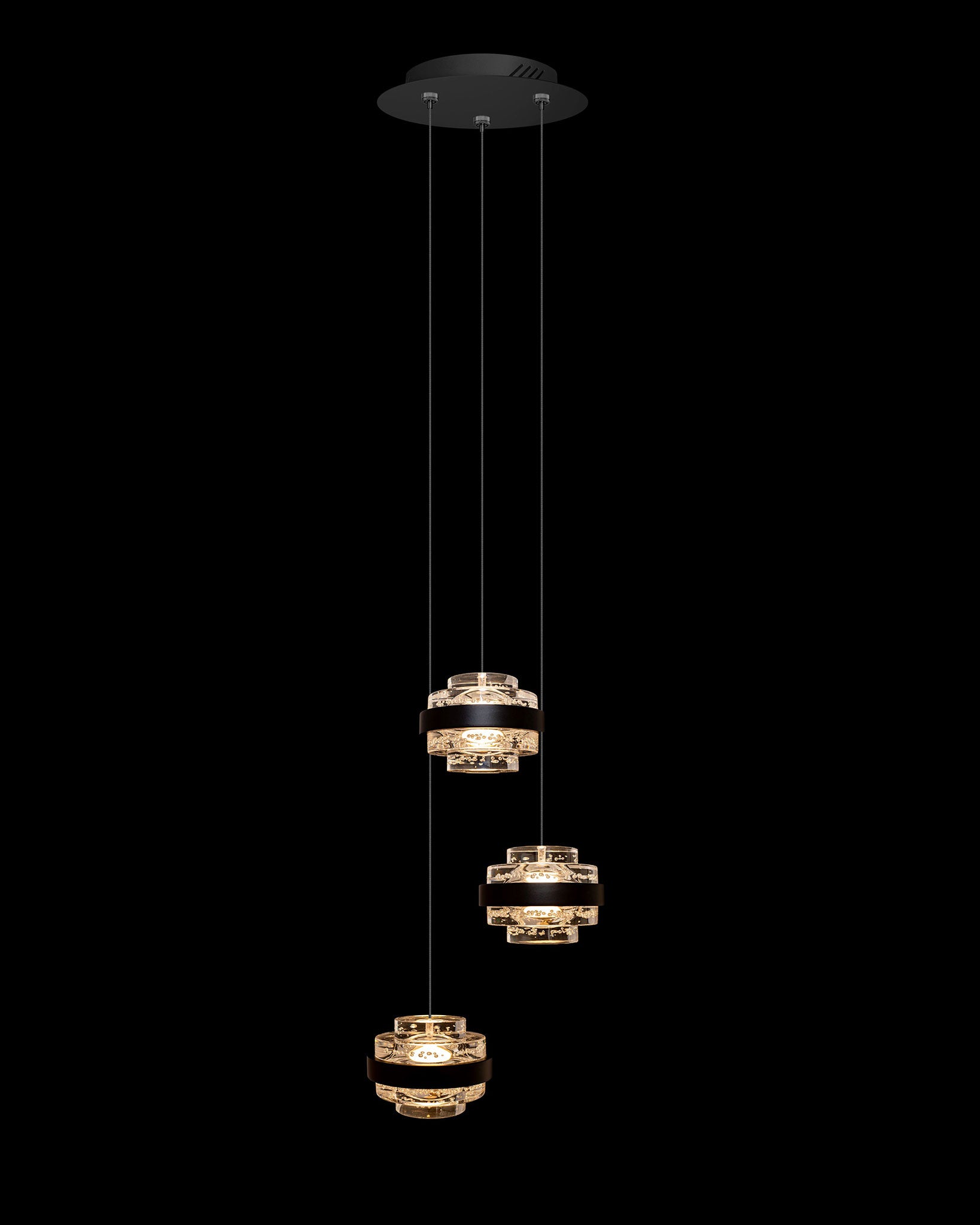 Geo LED 3Lt Round Champagne Pendant Matt Black Dimmable Light